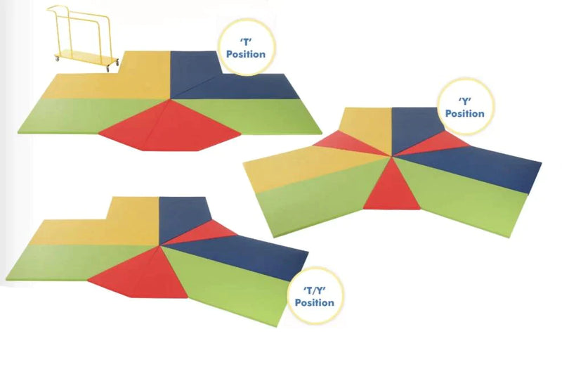 The climbing frame mat set is suitable for the gym time gym centre, rainbow and kaleidoscope climbing frames. It features hook and loop flaps to hold the mats securely in place. The mat set consists of 6 mats with 3 smaller infill mats which allows the mats to be used in 3 different configurations. Available as a set of 9 mats with or without a transport trolley – please use the drop-down menu to select the item you require.